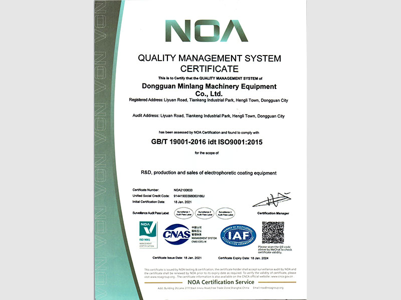 熱烈祝賀旻朗智能裝備通過ISO9001:2105質量管理體系認證